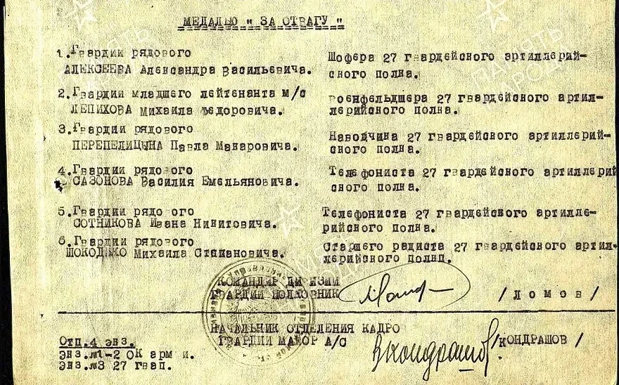 И даже иногда влезает в наградные листы и приказы командиров в/ч о награждении: