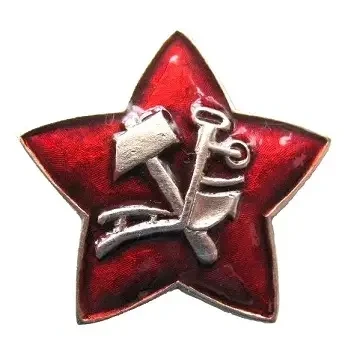 Во второй половине 1918 г. командиров можно было отличить по нагрудному знаку, где в обрамлении венка золотых листьев красовалась «Марсова звезда с плугом и молотом».