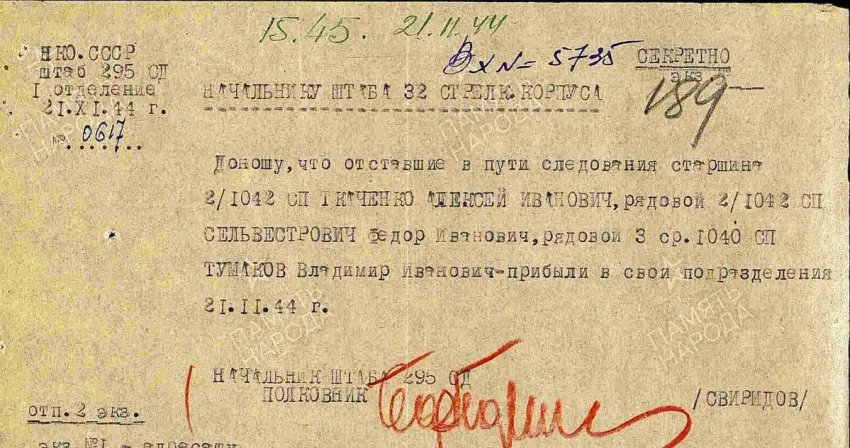 Кадровики пытались навести в этом деле порядок и указывали, что писать следует не «рядовой», а «красноармеец» (документ февраля 1944 г. за подписью начальника 1 отделения штаба 241 сд Лещенко):