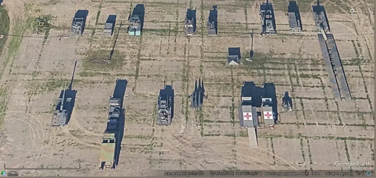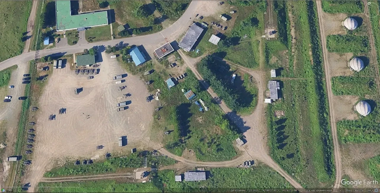Спутниковый снимок Google Earth: база хранения ЗРК С-75М3 на западной окраине Серебрянска. Снимок сделан в сентябре 2024 года