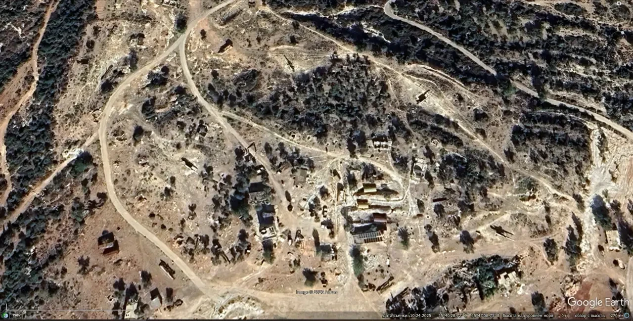 Спутниковый снимок Google Earth: позиция ЗРК С-125-2М в окрестностях города Латакия. Снимок сделан в октябре 2025 года