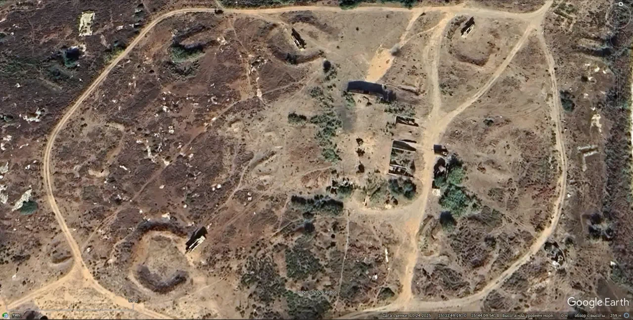 Спутниковый снимок Google Earth: позиция ЗРК С-75М3 северней города Латакия. Снимок сделан в октябре 2025 года