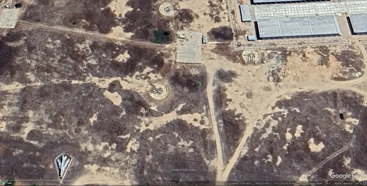 Спутниковый снимок Google Earth: позиция ЗРК С-125М на авиабазе Биканер в штате Раджастан. Снимок сделан в марте 2025 года