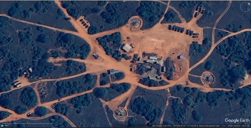 Спутниковый снимок Google Earth: позиция ангольского ЗРК С-125М1А на территории аэропорта Луанда. Снимок сделан в мае 2025 года