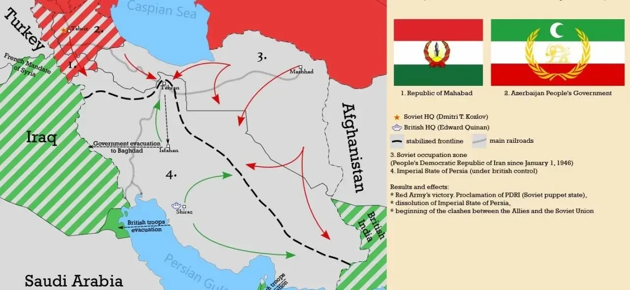 Было объявлено, что на весь период Второй мировой войны они берут территорию под свой контроль, а шаху было предложено отречься от престола. Отречение состоялось 16 сентября 1941 года. Бывший шах умер в изгнании в Йоханнесбурге, в Южной Африке, в 1944 году.