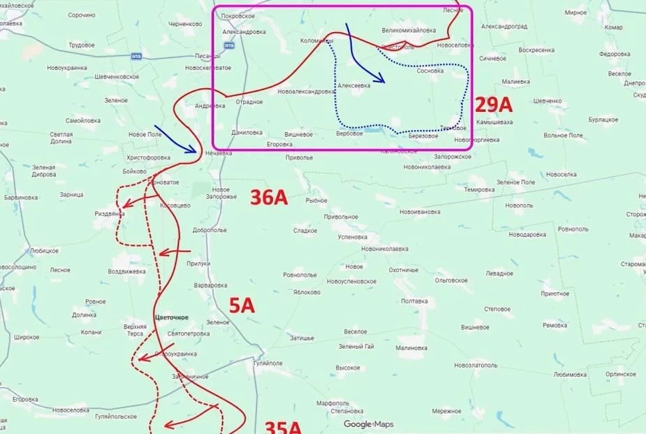 «В полосе группировки «Восток» ситуация плюс-минус такая же. Наши подразделения 35-й и пятой армии из района Гуляйполя продолжают атакующие действия по направлению к Верхней Терсе, продолжают охват этого населённого пункта и попытки закрепления уже на его территории», - проинформировал блогер.