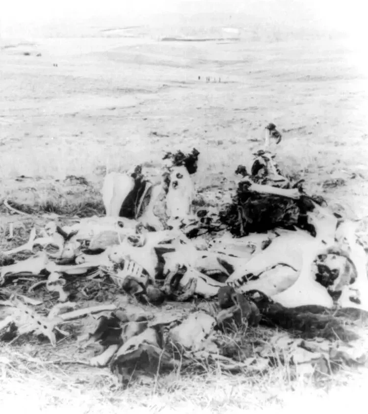 Все, что осталось от битвы при Литтл-Биг-Хорн, — груда костей, ок. 1877 г.