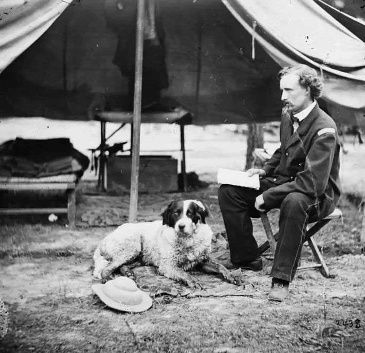 Лейтенант Джордж А. Кастер с собакой, 1862 год. Штат Виргиния