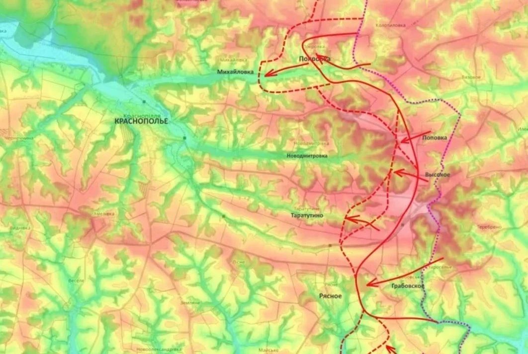 На Сумском фронте российские войска планомерно готовят оперативно-тактический плацдарм для удара на Сумы. В Краснопольском районе идет охват населенного пункта Лесное (бои за него - вопрос ближайших дней), продолжаются штурмы Тарутино.