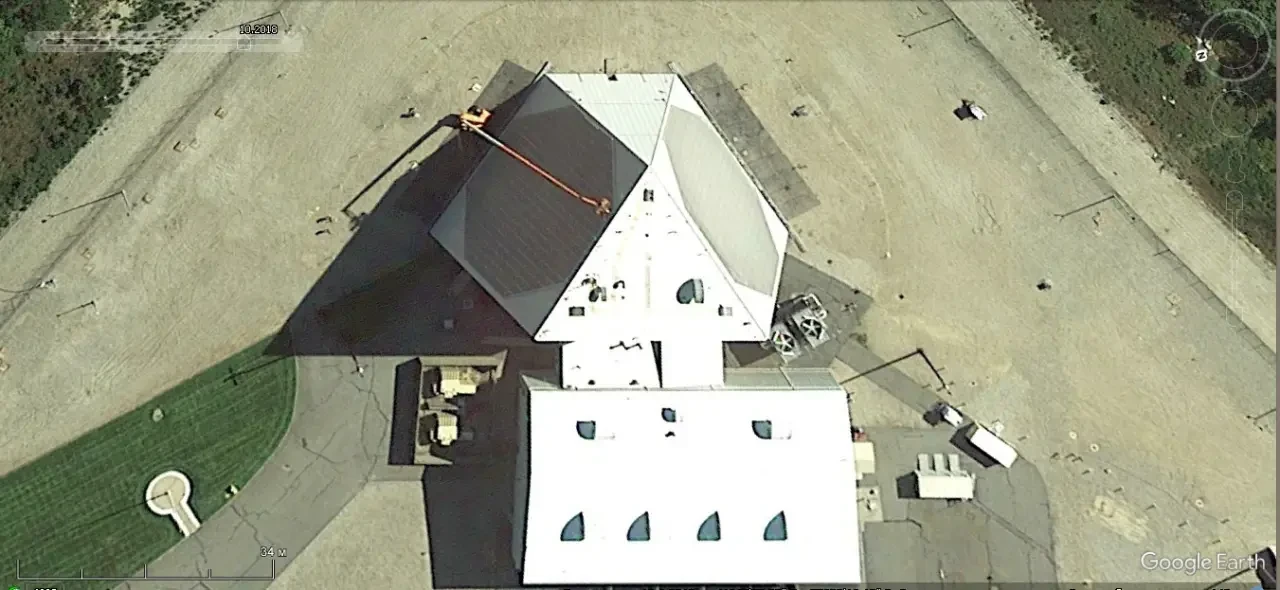 Спутниковый снимок Gооglе Еаrth: РЛС AN/FPS-132 на авиабазе Файлингдейлс. Снимок сделан в апреле 2023 года