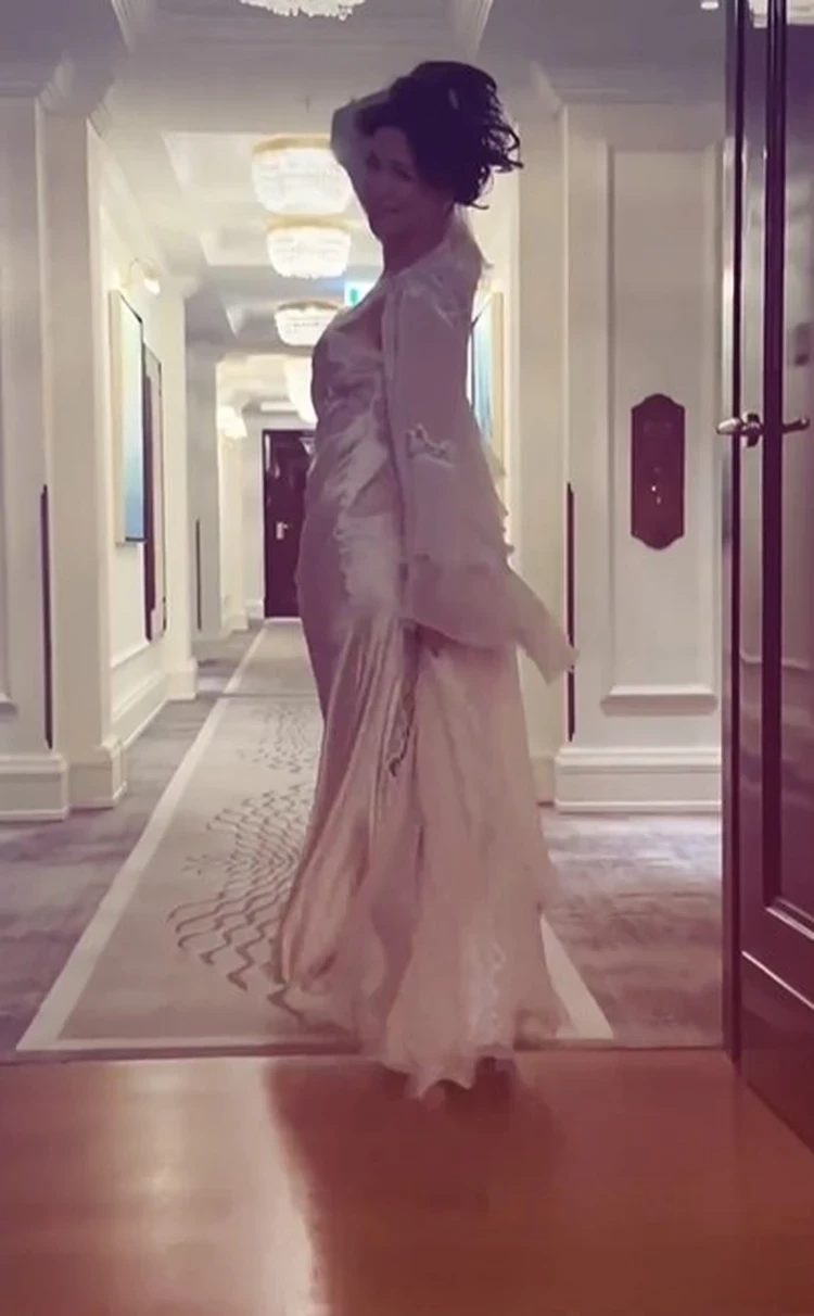 Актриса снялась в прозрачном пеньюаре и сексапильной комбинации на бретельках. Фото: кадр видео.