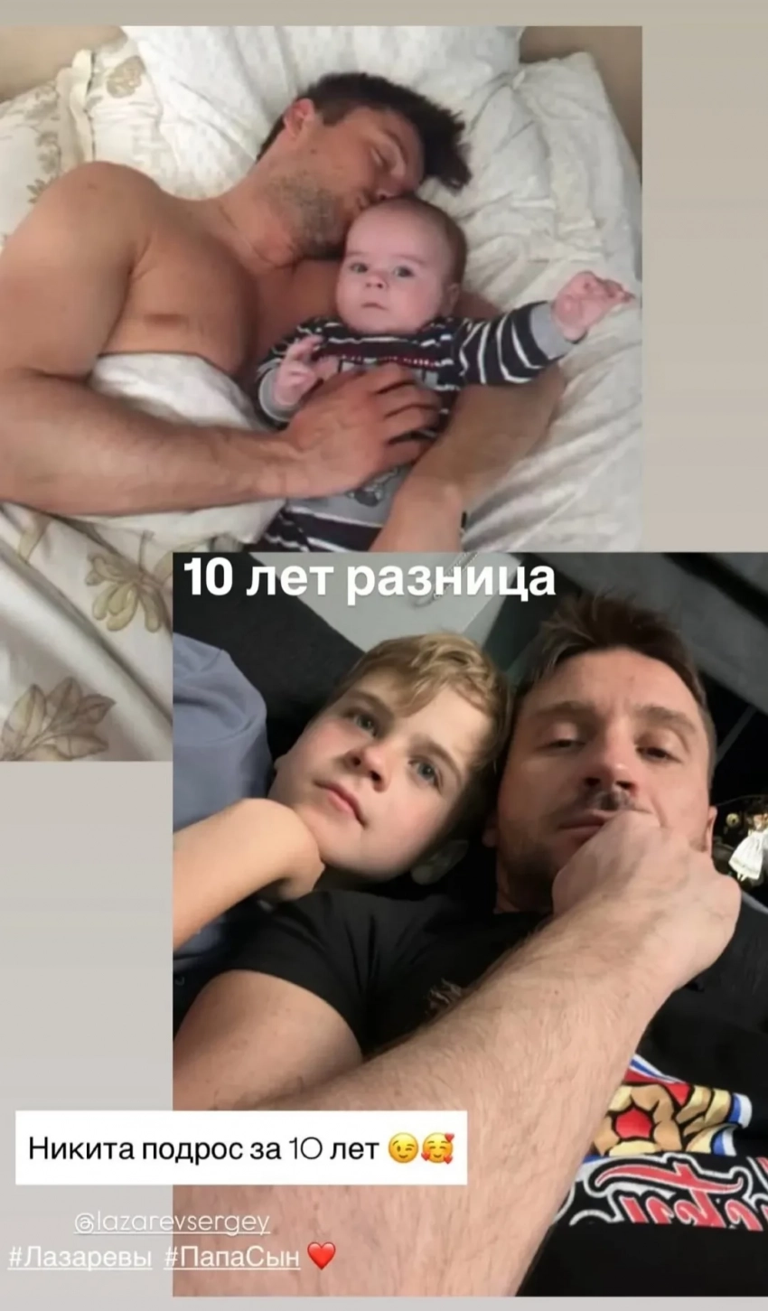 42-летний Сергей Лазарев опубликовал в своих соцсетях архивное и новое фото с сыном, обратив внимание подписчиков на то, как вырос Никита.