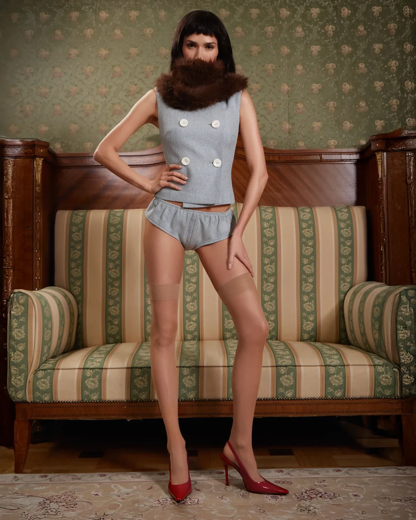 На фото 23-летняя олимпийская чемпионка позирует в комплекте из жилетки и микрошорт. Образ завершают меховой шарф-хомут, имитирующий бороду, прозрачные чулки и красные туфли на шпильке. Под публикацией Алина вновь высмеяла хейтеров, написав: "Конкурс на самый плохой комментарий официально открыт. Правила просты: чем хуже, тем лучше!".