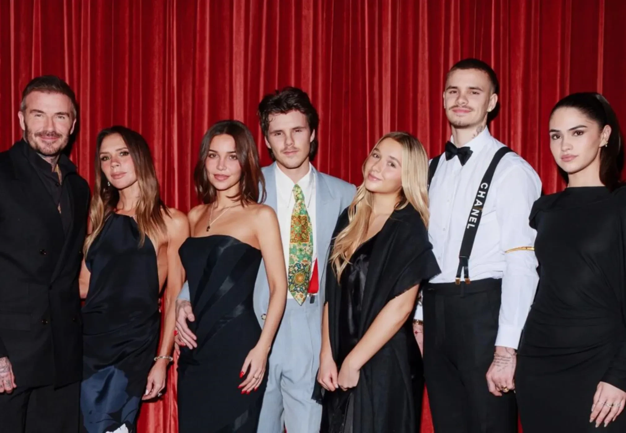 Дэвид, Виктория, Круз, Харпер и Ромео Бекхэм, Джеки Апостел и Ким ТернбуллДэвид Бекхэм с сыномВиктория Бекхэм с сыномДжеки Апостел и Круз БекхэмДэвид и Виктория БекхэмЭмма Бантон и Виктория БекхэмПримечательно, что на днях Круз "протянул оливковую ветвь" старшему брату, опубликовав в своих соцсетях серию архивных фото с ним. Сам Бруклин, который ранее потребовал у родственников не упоминать его имя в публичном пространстве и общаться с ним только через адвокатов, на этот жест никак не отреагировал.