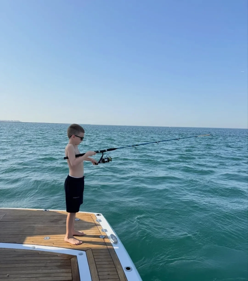 Декольте, золотые украшения и рыбалка: Виктория Лопырёва отдыхает на яхте с сыном