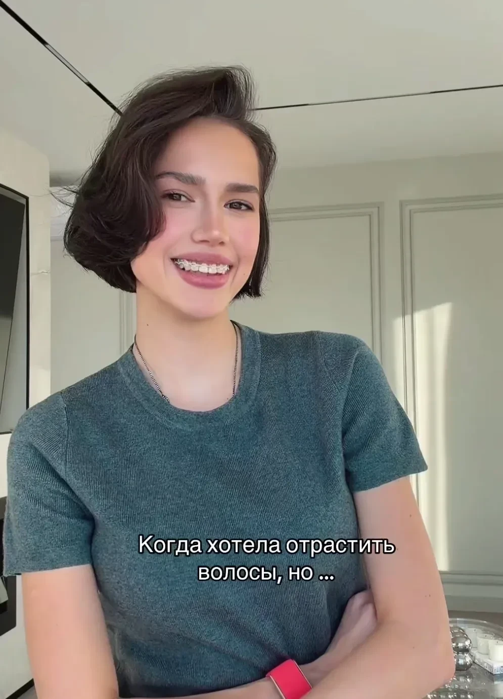 Спортсменка опубликовала видео с новой причёской, где она позирует в кофте с декольте и футболке. Она намекнула, что планировала отращивать волосы, но в какой-то момент передумала. "Зато со мной не скучно", — написала Загитова.