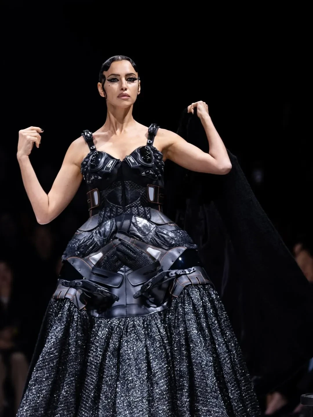Ирина Шейк приняла участие в показе Junya Watanabe в рамках Недели моды в Париже. 40-летняя российская модель дважды вышла на подиум в разных образах.