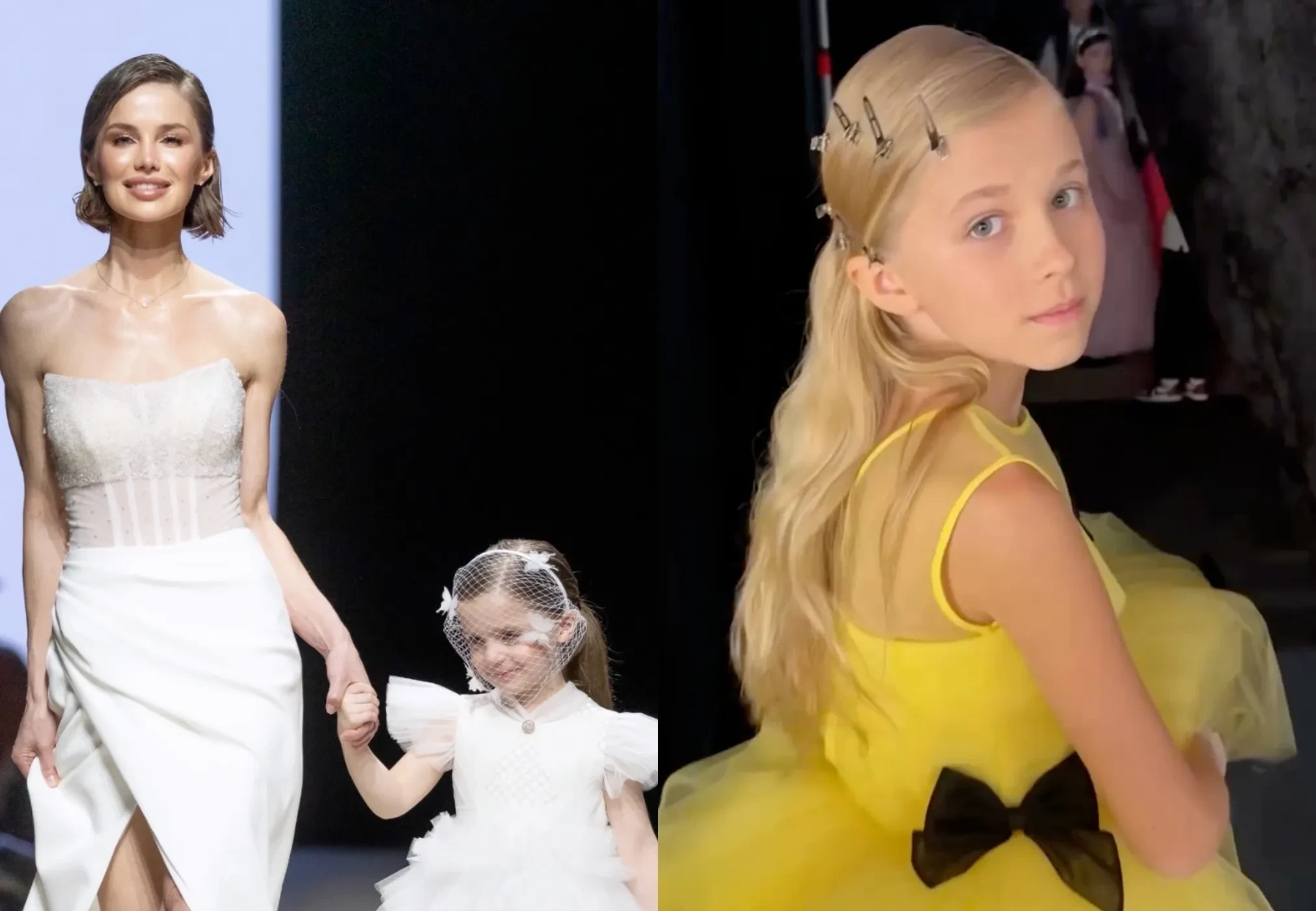 Дочь Виктории Дайнеко ЛизаВ показе также приняла участие внучка олигарха Александра Чигиринского Николь — дочь близкой подруги Дианы Манасир Марии Чигиринской, а четырёхлетняя дочь певицы Алексы Адриана вышла на подиум вместе с матерью в белых платьях. Участница "Фабрики звёзд 6" рассказала, что гордится дебютом дочери. Шоумен Александр Ревва пришёл поддержать свою дочь Амелию, которая вышла к зрителям в розовом луке. Голубое платье на подиуме выгуляла дочь Кети Топурии Оливия от первого брака с Львом Гейхманом.