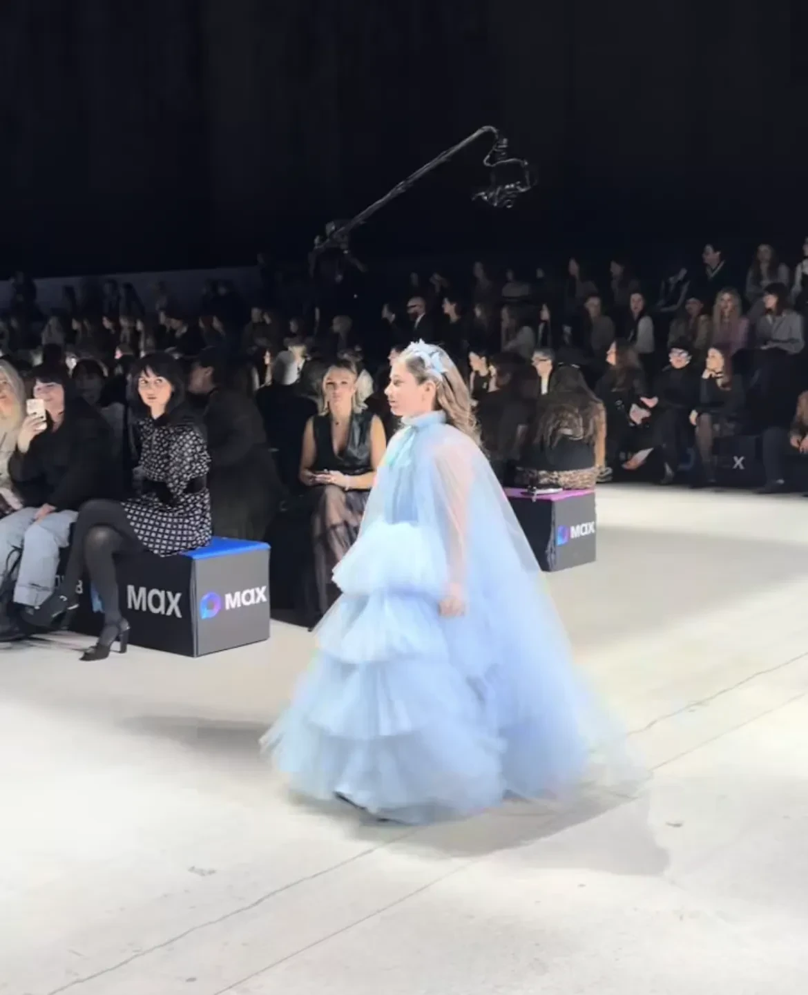 На подиум также вышла дочь Бориса и Ирины Зарьковых Мария. Она дефилировала в зелёном платье и розовой шубе, а мать наблюдала за ней из зала. DJ Smash тоже сидел в первом ряду, пока его жена Анастасия Кривошеева и дочь Серафима шли по подиуму в голубых вечерних платьях. В шоу не обошлось и без сыновей знаменитостей. Так, в нём принял участие один из четверых наследников актрисы Марии Кожевниковой Василий.
