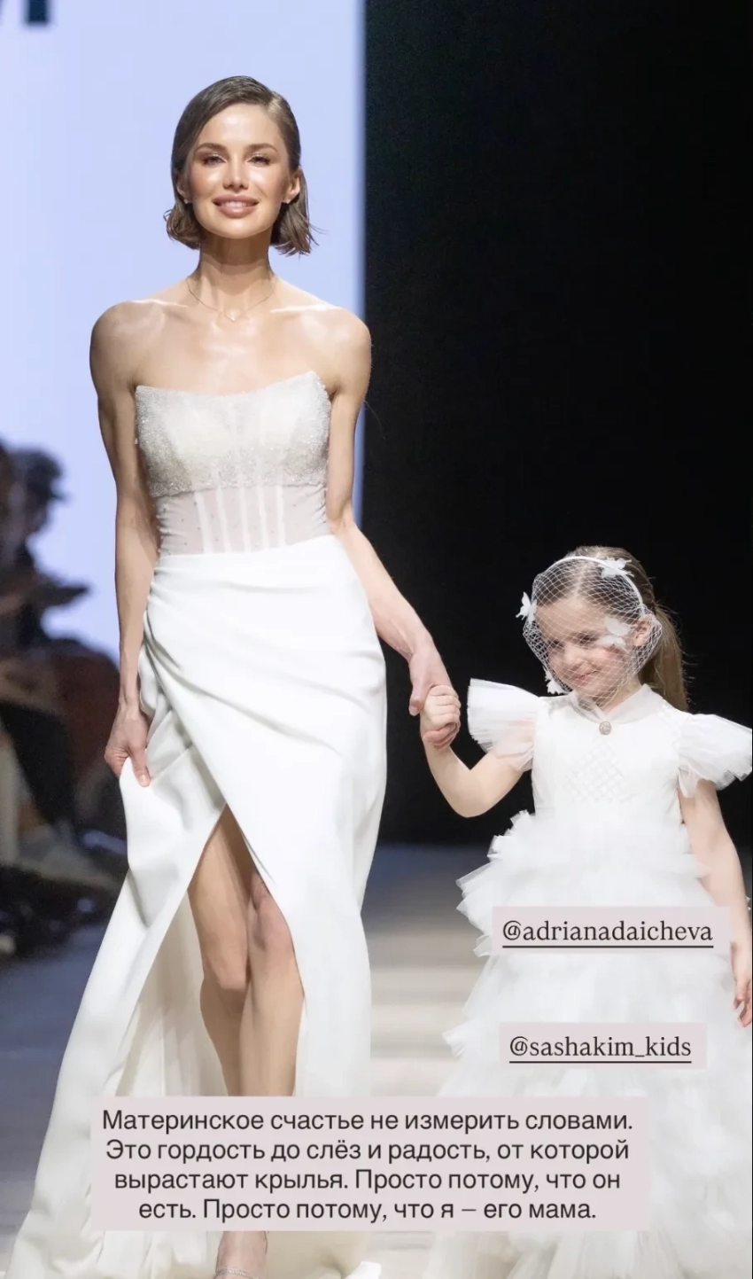 Сын Марии КожевниковойРанее в рамках Недели моды в Москве Аврора Киба в свадебном платье и внучка экс-президента Узбекистана Марьям Тилляева вышли на подиум для бренда Solangel, а Александр Рогов, Эвелина Хромченко, Юлия Барановская и Мария Миногарова посетили показ Алёны Ахмадуллиной.