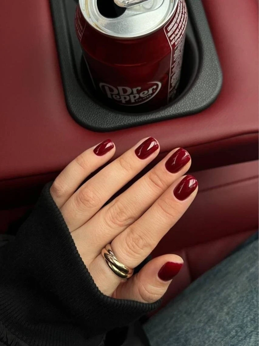 Темные оттенки лака на коротких ногтях выглядят особенно благородно. Глубокий цвет создает плотный фон, подчеркивает форму руки и делает маникюр аккуратным.