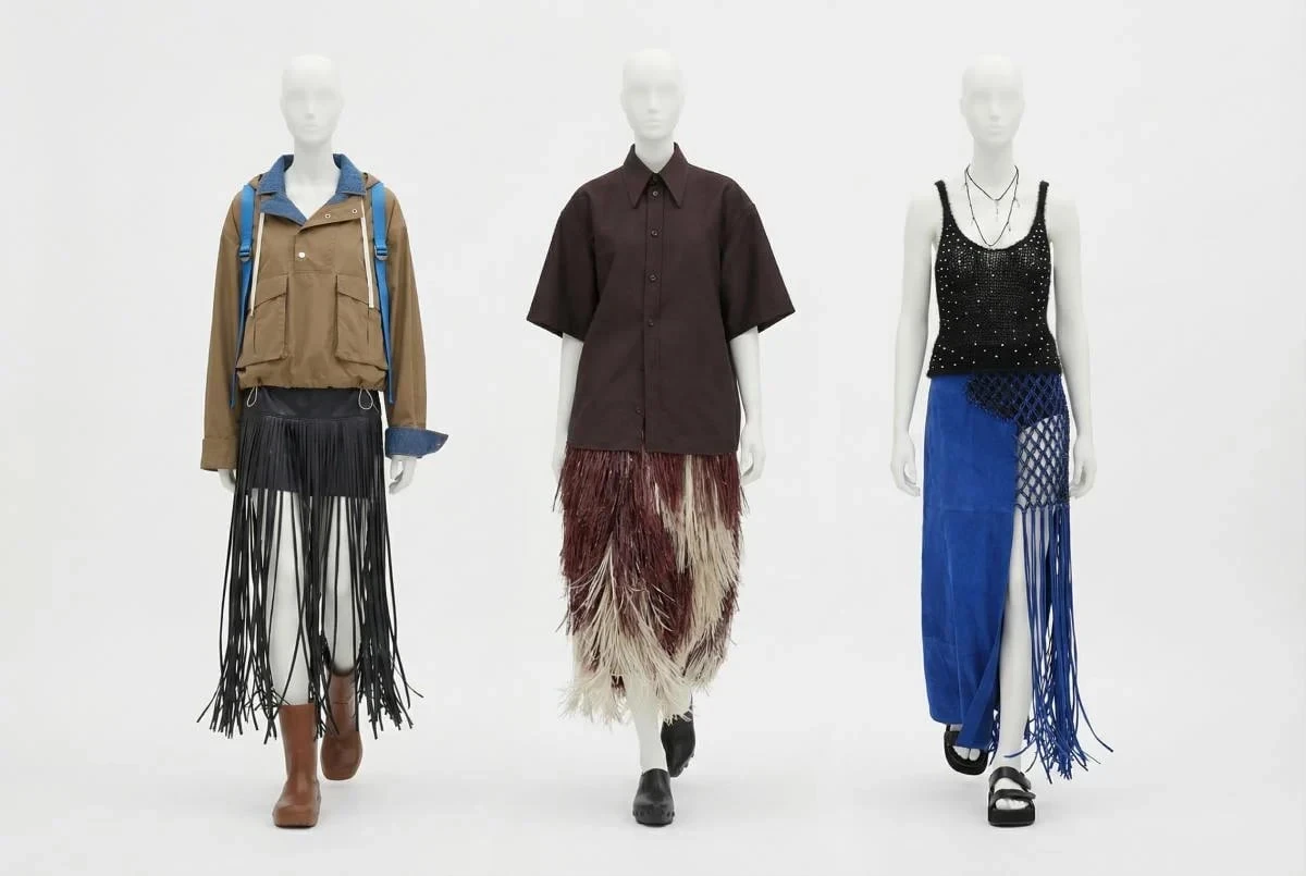 Бахрома придает одежде движение и легкую игривость. В 2026 году она может украшать край юбки или покрывать ее практически полностью. Особенно эффектно такие детали смотрятся на юбках-карандашах или моделях миди.
