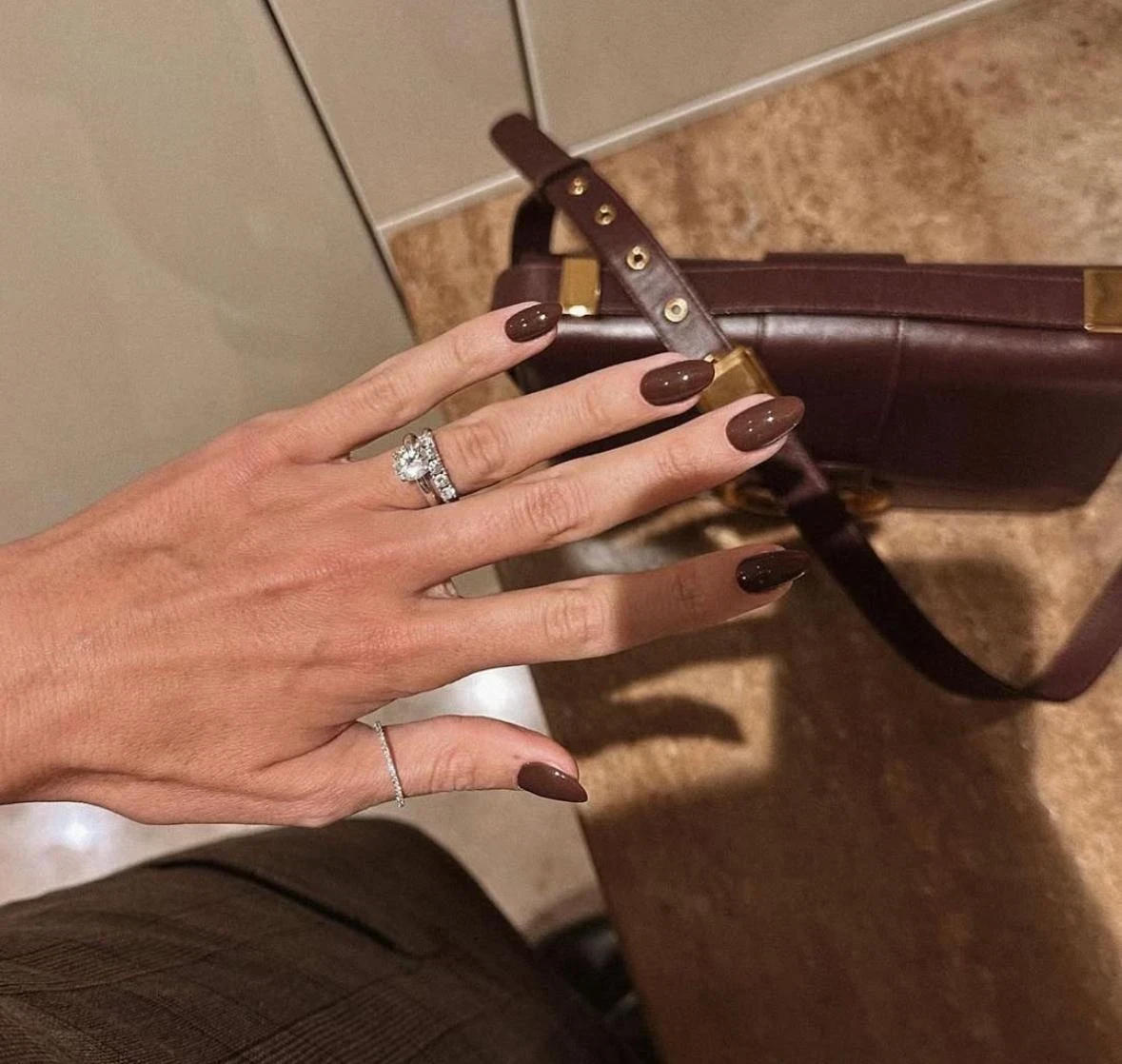 Если винный — это акцент, то тёплый шоколадный нюд — про сдержанную гармонию. Он подчёркивает аккуратность рук, визуально удлиняет пальцы и идеально подходит для деловых и повседневных образов.